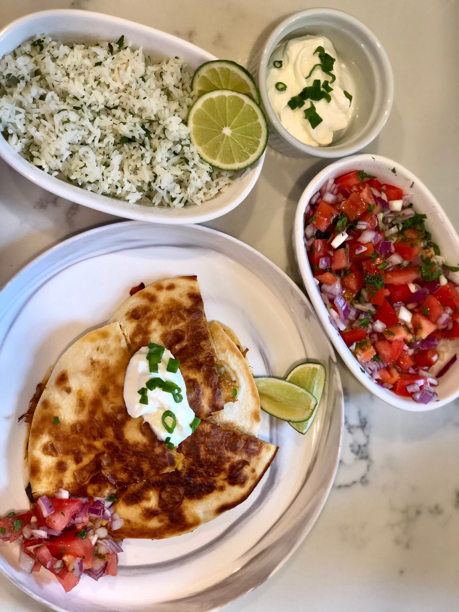 Quesadillas are a great change of pace when you want an alternative to tacos. Remove the chicken and it’s an equally delicious vegetarian option!